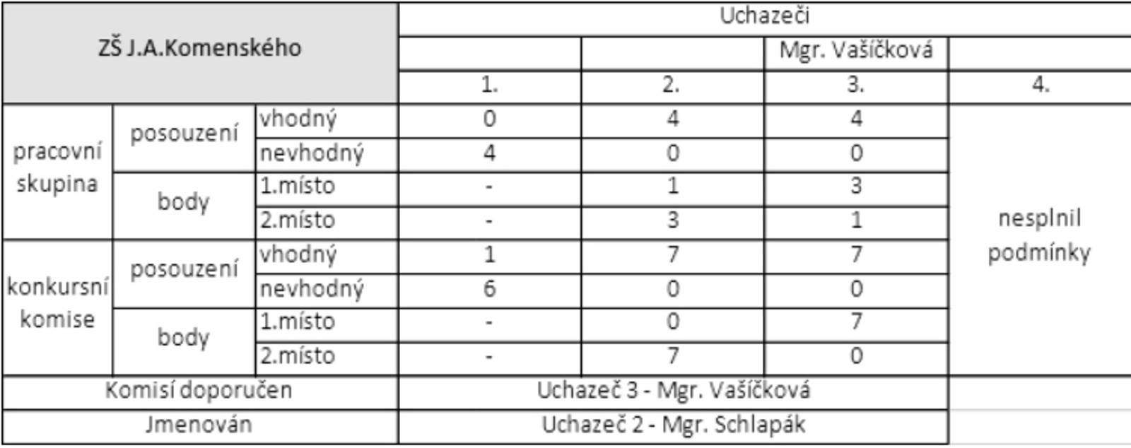 - Pokud komise doporučí pořadí kandidátů a vítěze, zřizovatel by jej měl povinně respektovat nebo před jinou odbornou komisí (MŠMT, ČŠI) zdůvodnit svůj nesouhlas.