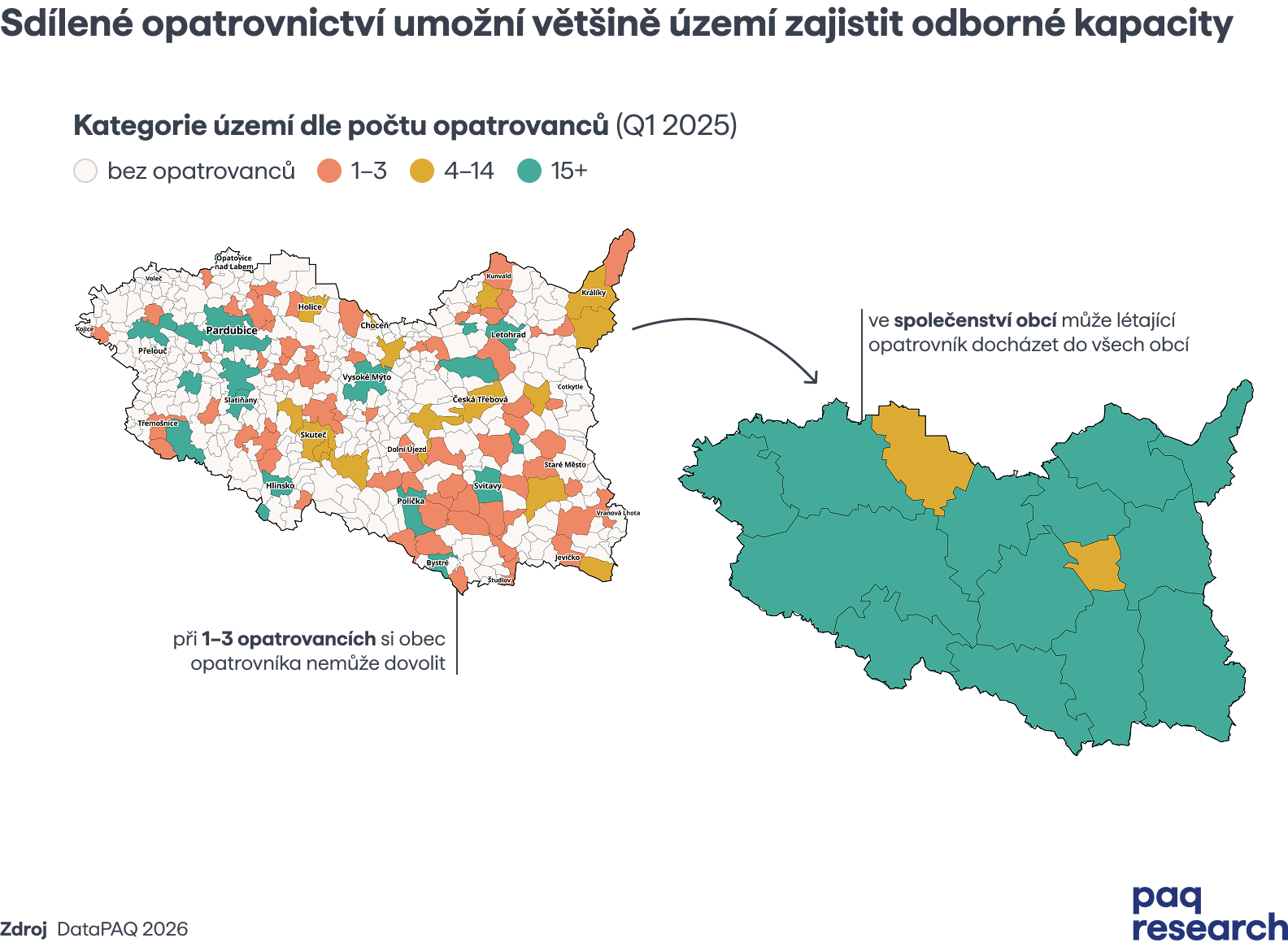 Opatrovnictví v malých obcích zajišťuje starosta či obecní zastupitel. Ti jsou často neuvolnění, což znamená, že se veřejné službě věnují ve svém volném čase, vedle hlavního zaměstnání [[4]]. V Česku máme 948 obcí s jedním až třemi opatrovanci. To je tisíc obecních zastupitelů, kteří se často neočekávaně musí naučit starat o dva tisíce potřebných osob. Tento systém vede, i přes maximální osobní nasazení starostů, k omezené kvalitě služby, případně k jejímu čistě formálnímu výkonu.