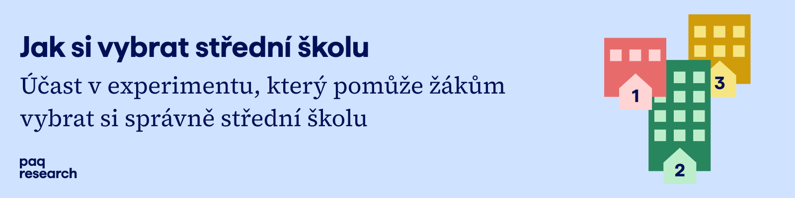 V PAQ Research plánujeme na podzim (říjen-prosinec) experiment, v kterém chceme sledovat, jak si žáci vybírají střední školy, pokud o nich mají dostatek informací.